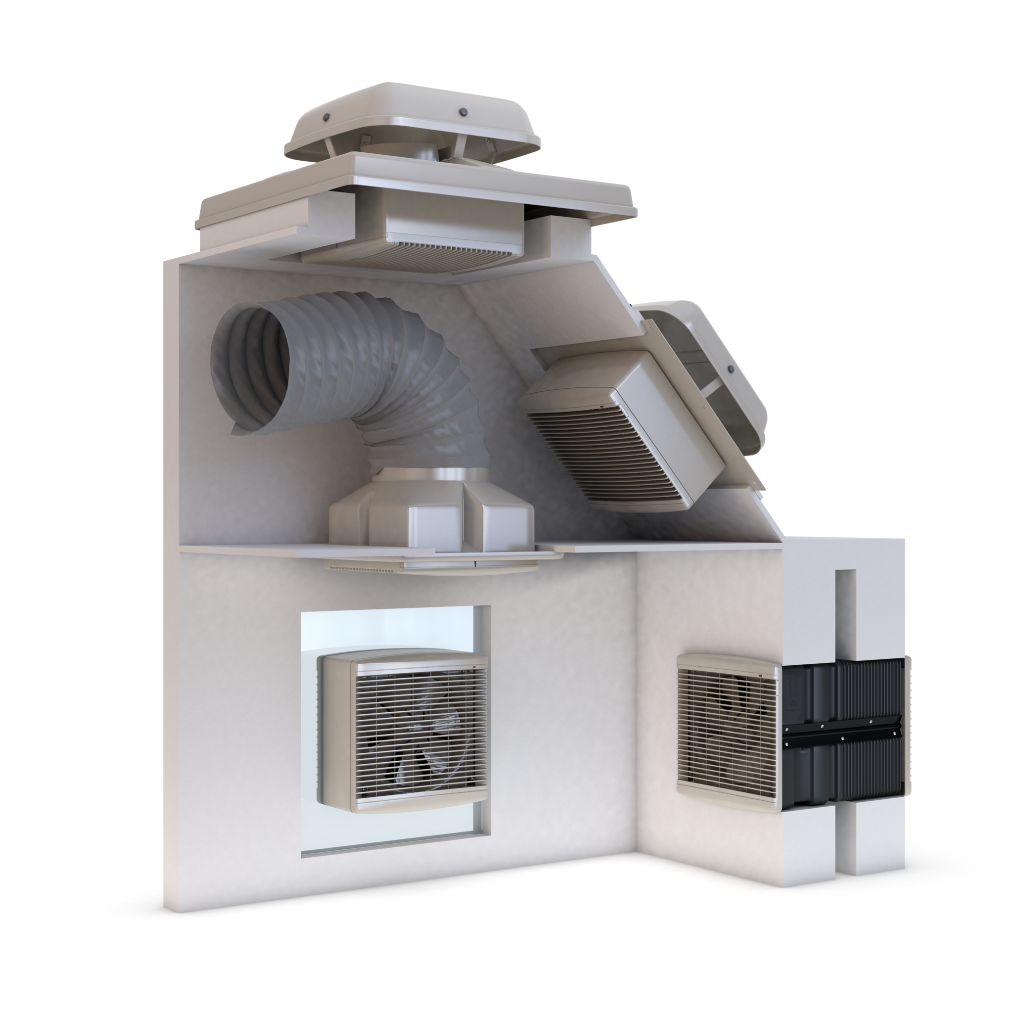 The XS fan range encompasses several fan kits for a variety of Commercial applications. Each kit is specific to an installation type; options include: