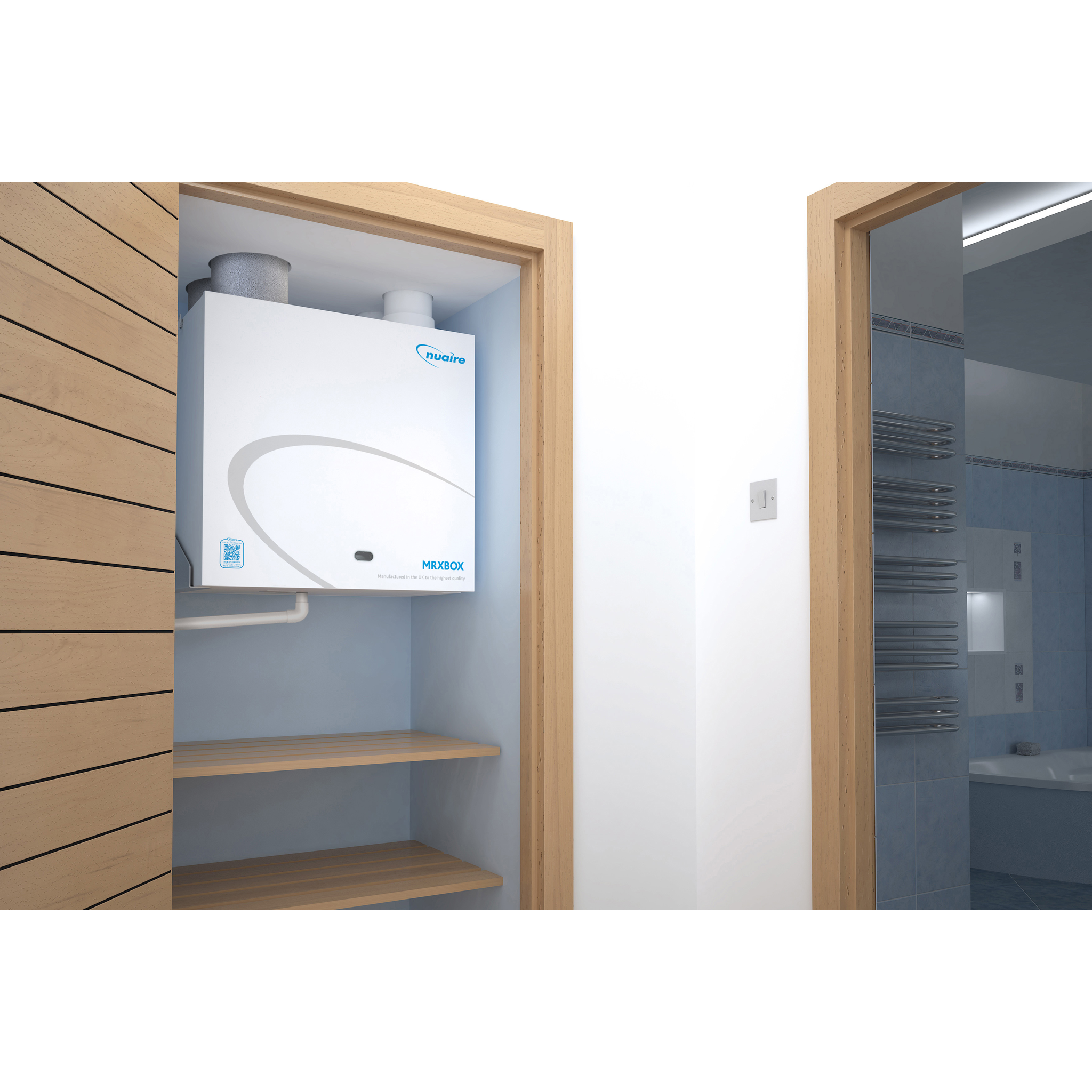 Our MRXBOX Acoustic range incorporates surrounding to your MVHR unit and flexible duct connectors, significantly decreasing noise and vibration output. Noise levels are prescribed in the Building Regulations as guidelines for homes in both habitable (30 dB(A)) and non-habitable rooms (35 dB(A)). Nuaire's MVHR units are designed to limit the noise generated by these continuously running ventilation systems.